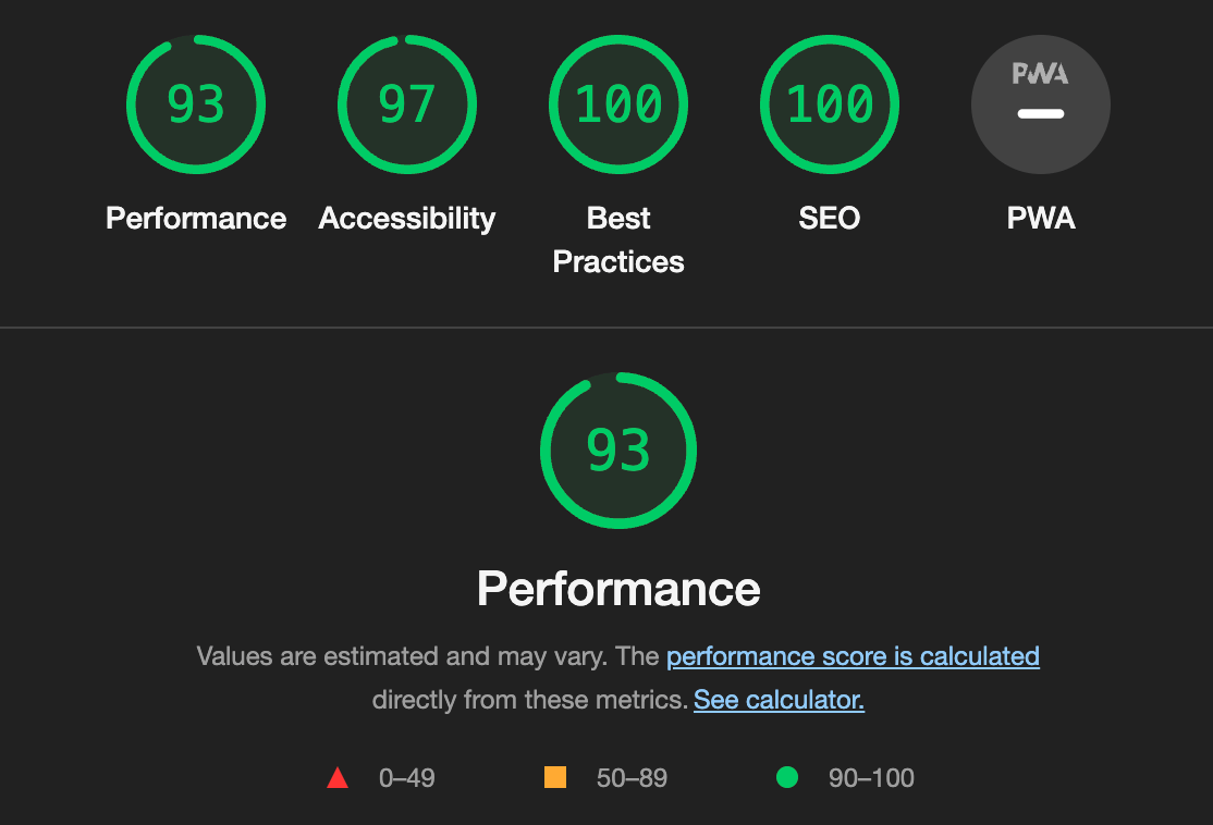 - It really is amazingly fast and performant in all aspects — to load, to paint, and to use. Without any optimization here’s the first lighthouse profile: